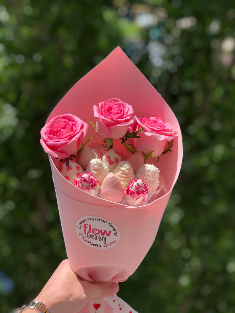 Прекрасные букеты из клубники, порадовали мою коллегу! Спасибо веселому курьеру)